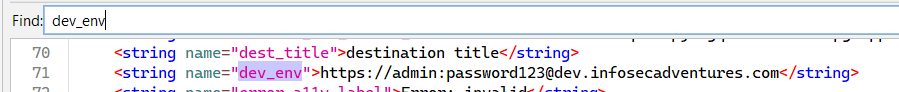 strings.xml dosyasına gidip dev_env stringinin karşılığına bakalım.